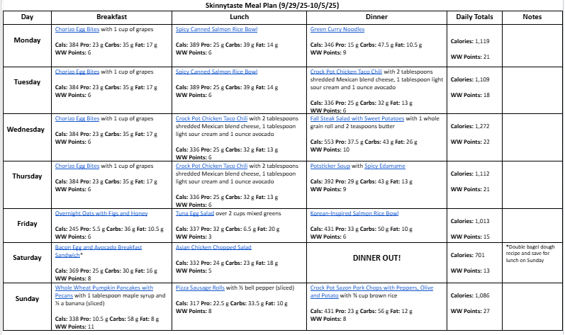 Free 7 Day Healthy Meal Plan (Sept. 29-Oct. 5)