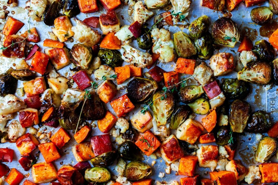 I realize, after 18 years as a part of it, that the rules of the food internet in the week before the American cooking superbowl we call Thanksgiving dictate that everything should relate back to turkey, stuffing, or pie. But friends, we have that abundantly covered in the archives, and the newsletter. So let me tell you what I’ve been making a lot lately to feed myself what I crave, and that is sheet pans of mixed vegetables roasted until almost charred, finished with a balsamic vinaigrette, and studded with heavenly, salty, crispy pillows of halloumi.
