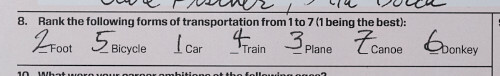 There’s also a spot to rank “forms of transportation.” Maya Rudolph, the only person other than Reiner to take the quiz for the paper as of writing, put “car” first and “canoe” last (“donkey” was also an option).
